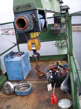 Reparation af bådekran.