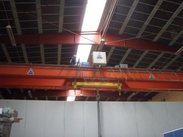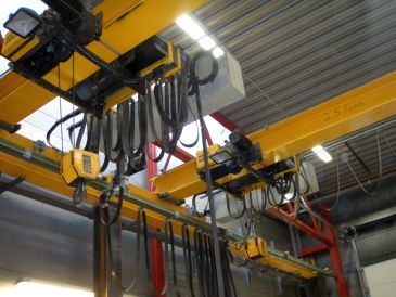 Prøvebelastning af kran på maskinværksted.