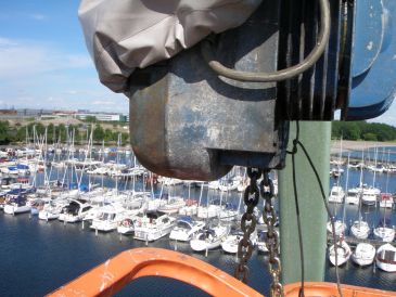 Prøvebelastning af 20 Tons bådekran i Jyllinge Lystbådehavn.